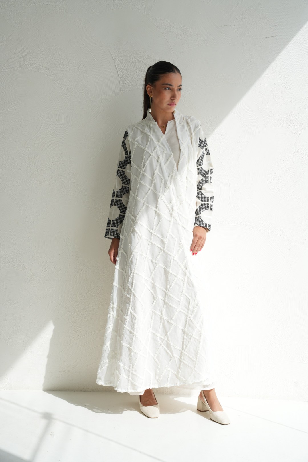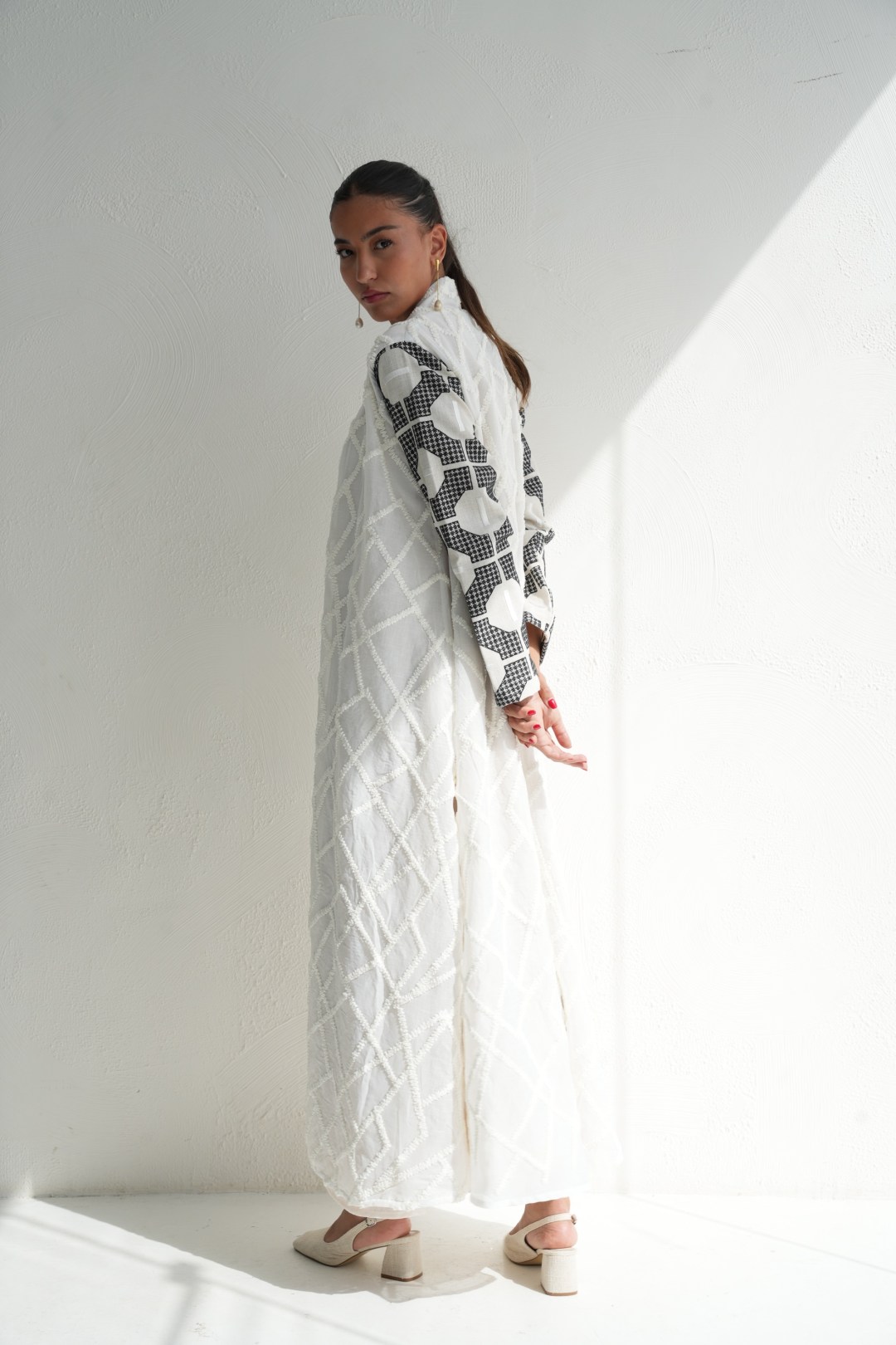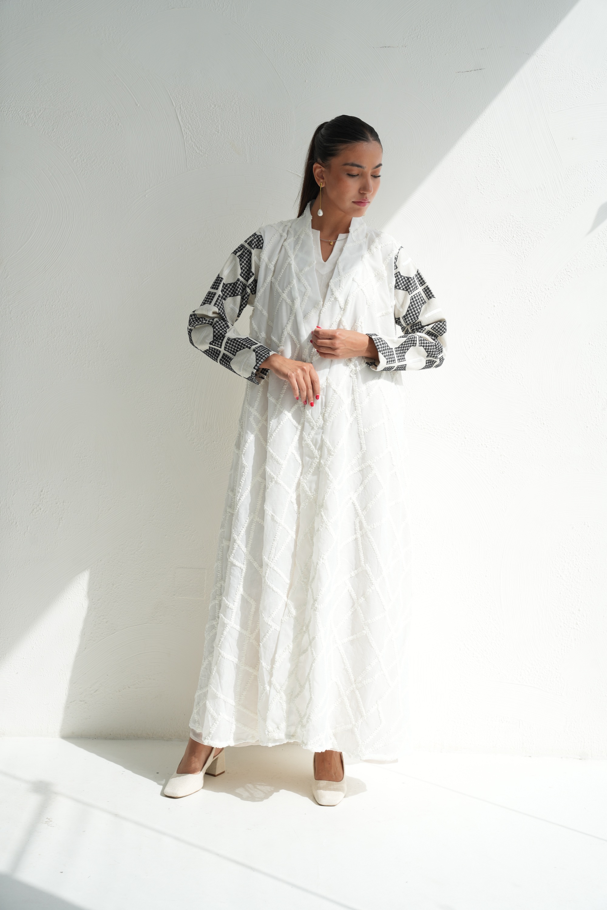 The Stone Cloud Abaya is a stunning piece of modest fashion, offering an elegant blend of tradition and modern style. This embroidered abaya features intricate abstract designs on the sleeves that capture the essence of artistic expression. Crafted for comfort and beauty, this abaya is perfect for special occasions or adding a touch of sophistication to everyday wear.