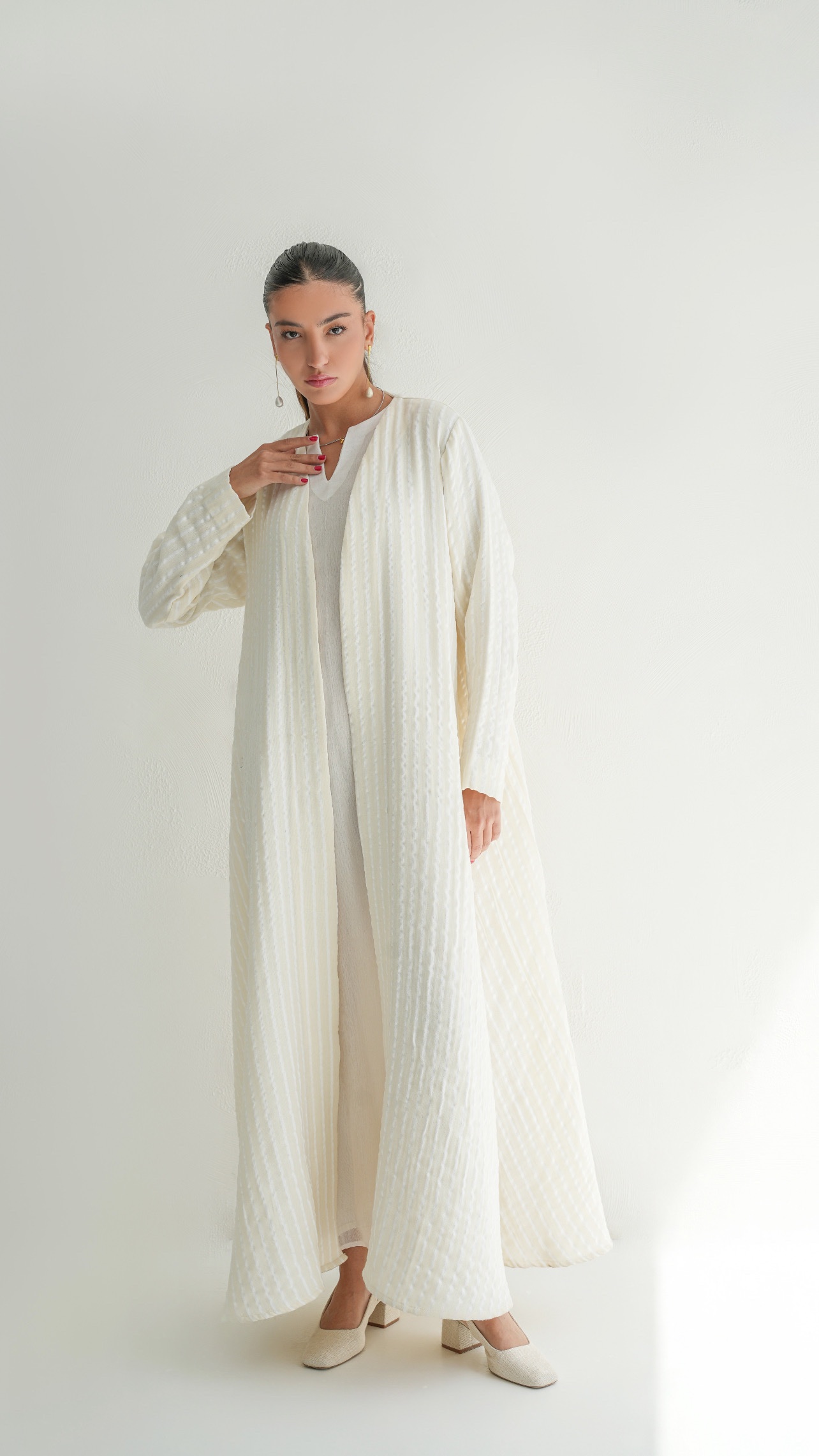 Discover timeless elegance with the Au Revoir Abaya. Adorned with gray geometric patterns, this garment fuses tradition and modernity. The white sleeves add a touch of sophistication, contrasting beautifully with the patterns. Ideal for any occasion, this abaya is a symbol of style and comfort, perfect for expressing your unique and refined taste.